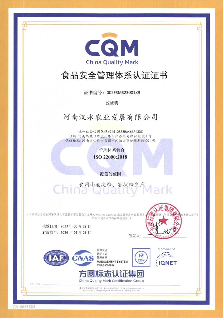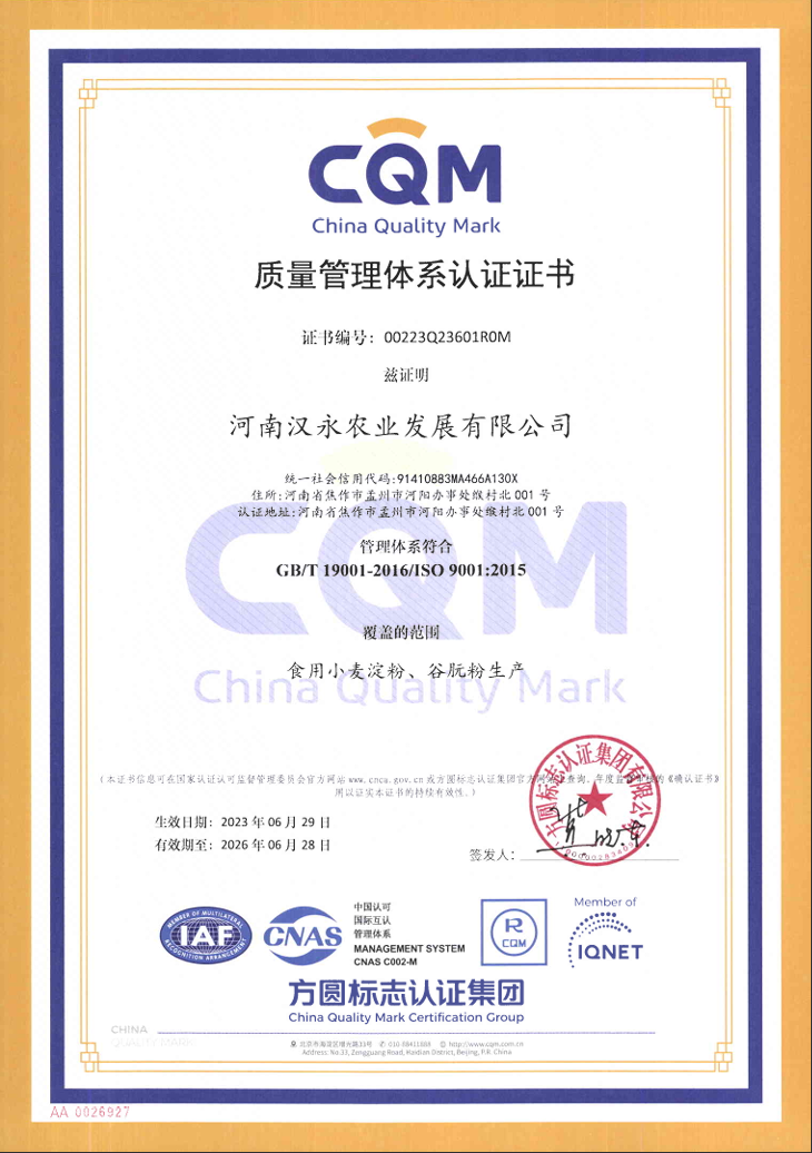 After 30 years of continuous innovation and explosive development, Hanyong's sales range covers the world. The agricultural sector of the group company has achieved an annual processing of 1.2 million tons of corn and 600000 tons of wheat flour, with a total output value of 7 billion yuan. The annual output of edible alcohol accounts for about 7% of the country's total output, and the annual output of gluten powder accounts for about 22.2% of the country's total output, equivalent to 45.5% of the country's total export volume.